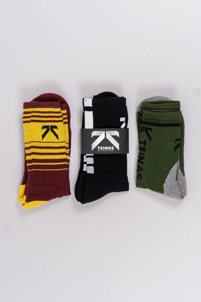 Pack promocional mixto, 1 par Bordo + 1 Verde + 1 Negra Stripe